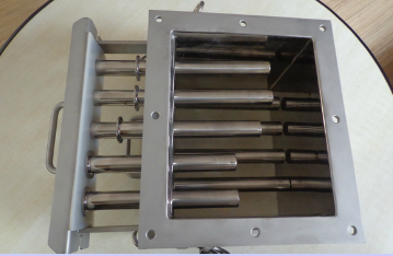 翻轉(zhuǎn)型磁柵除鐵器可以將磁棒向外翻轉(zhuǎn)180度,便于清理,并保護(hù)磁棒免受損傷和污染。